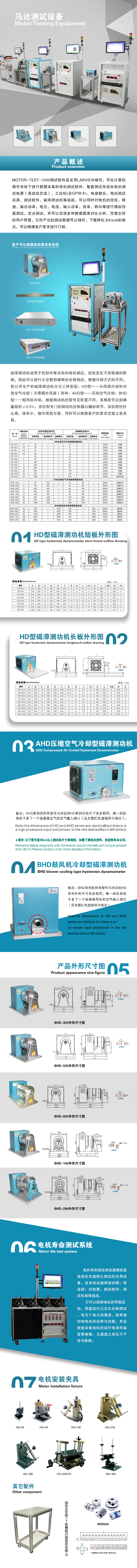 磁滯式測(cè)功機(jī)(AHD系列)對(duì)于低中等功率的測(cè)試是通用和理想的。磁滯式剎車不需 依靠速度來(lái)產(chǎn)生扭力,因此可以進(jìn)行從無(wú)載到堵轉(zhuǎn)的全程測(cè)試。剎車?yán)鋮s根據(jù)型號(hào)是由對(duì)流冷卻 (無(wú)風(fēng)源)或空氣冷卻(壓縮空氣AHD系列或鼓風(fēng)機(jī)BHD系列)提供,磁滯式測(cè)功機(jī)有連續(xù)性 的和短時(shí)間散發(fā)更多熱量能力的間歇性功率范圍。根據(jù)測(cè)功機(jī)的大小和系統(tǒng)組成,其精確度為滿 刻度的±0.25%到±0.5%。同時(shí)也提供對(duì)于高速電機(jī)測(cè)試的特殊設(shè)計(jì)。使用于各種交直流電機(jī)的 性能測(cè)試 (扭矩,轉(zhuǎn)速, 功率等), 被廣泛應(yīng)用于汽車馬達(dá),家用電器馬達(dá), 電動(dòng)工具馬達(dá),壓 縮機(jī)電機(jī)及航空電機(jī)的檢測(cè)。