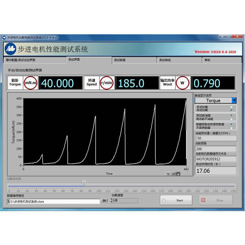 C0-MTHD- S100KT步進電機測試系統用于測試步進電機在不同頻率下的失步力矩,本系統實現了對步進電機多種模式的控制,能夠實時采集、存儲電機的電壓和電流、扭矩、轉速、功率等信號,并對數據分析處理以判斷電機運轉狀態。