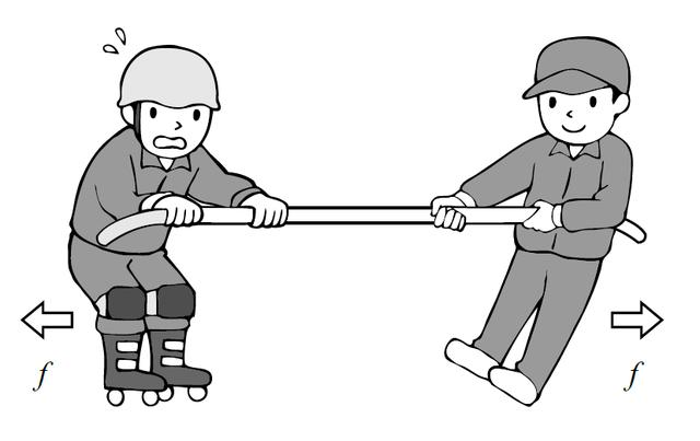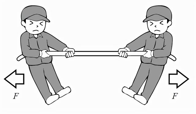 如果兩人都拉,則繩子上會有張力。在靜止狀態(tài)下, 拉力(F)和被拉力(F)保持均衡, 產(chǎn)生的張力相同, 這很容易理解。