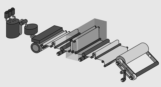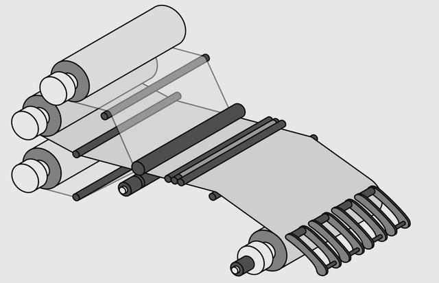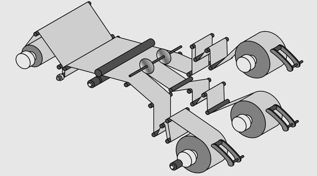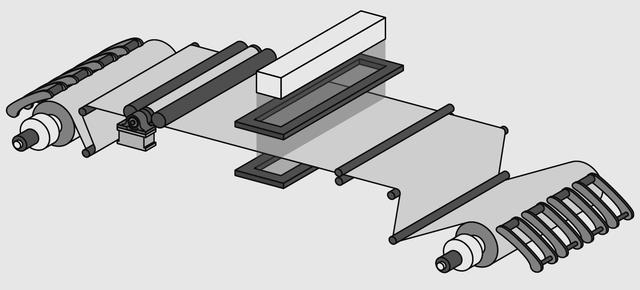 主軸電機驅(qū)動主軸,并從左向右進給長形材料。電機的速度決定進給速度(線速度),但與張力沒關(guān)系。不過,張力變大后需要輸出功率大的電機。